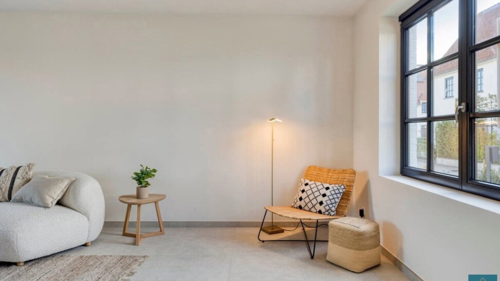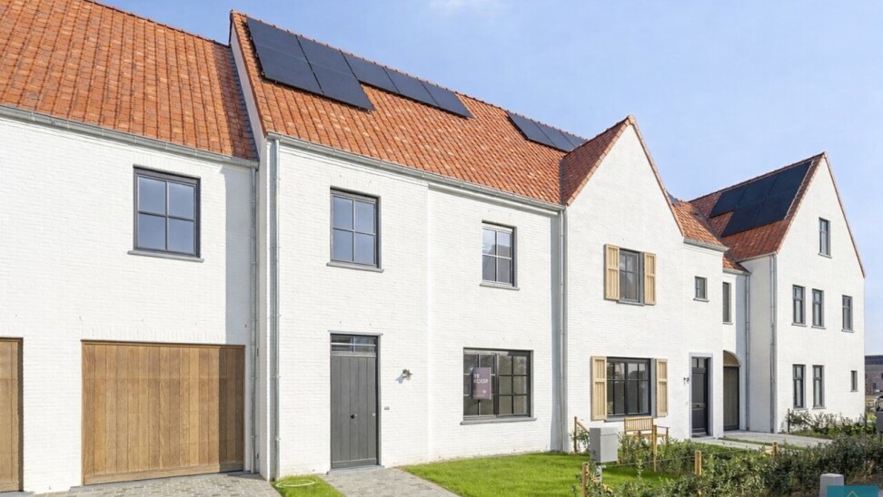 Deze witgekaleide pastorijwoning ligt in het gegeerde woonproject Bistierland te Harelbeke.