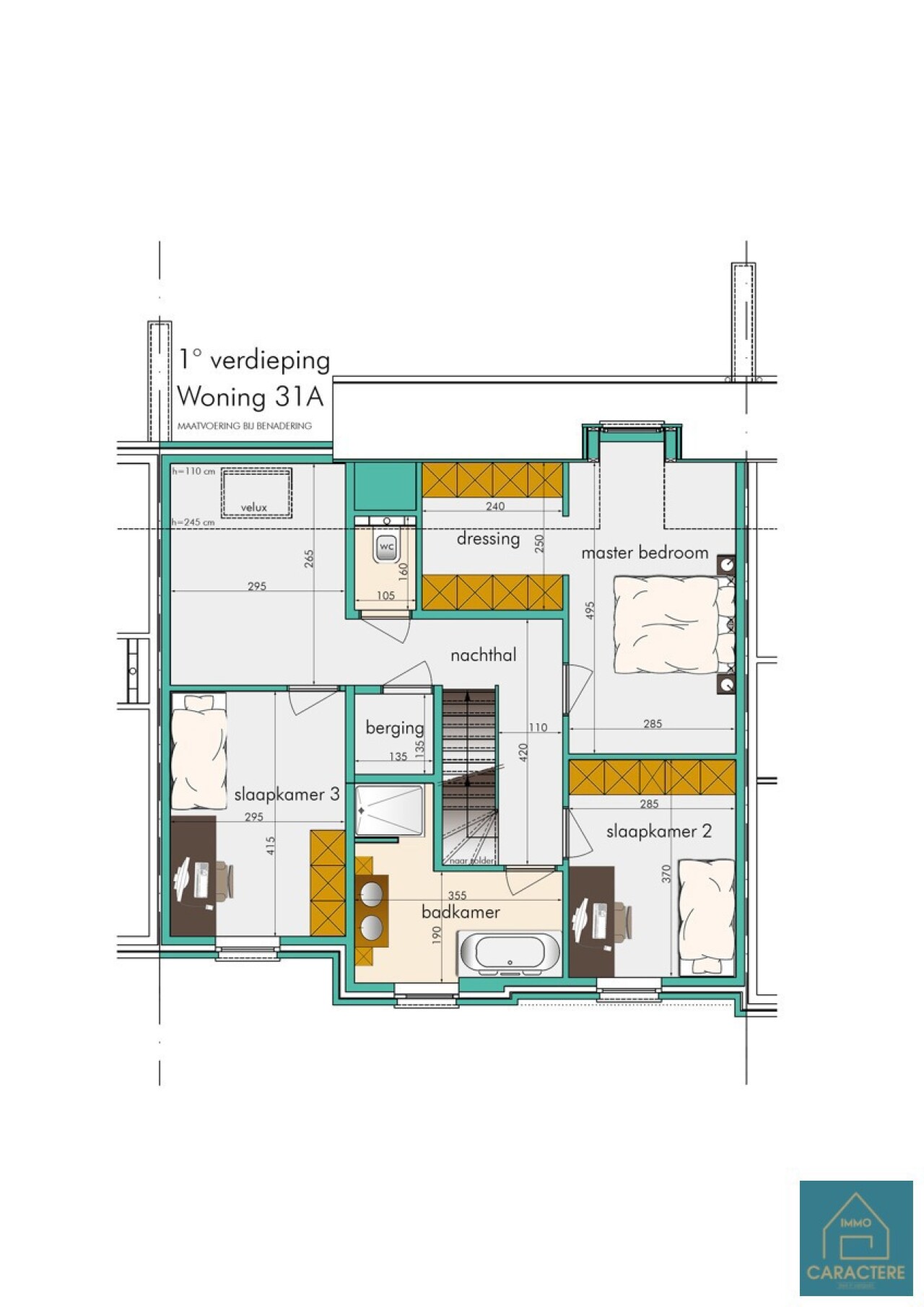 Op de eerste verdieping bevinden zich drie volwaardige slaapkamers, waaronder een master bedroom met dressing.